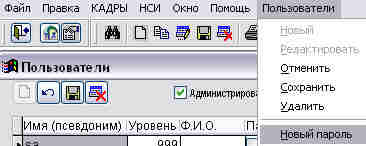 2) самим пользователем, вошедшим в систему приложений без открытия формы ПОЛЬЗОВАТЕЛИ, только после активации опции меню: "Файл/Настройки/Смена пароля",